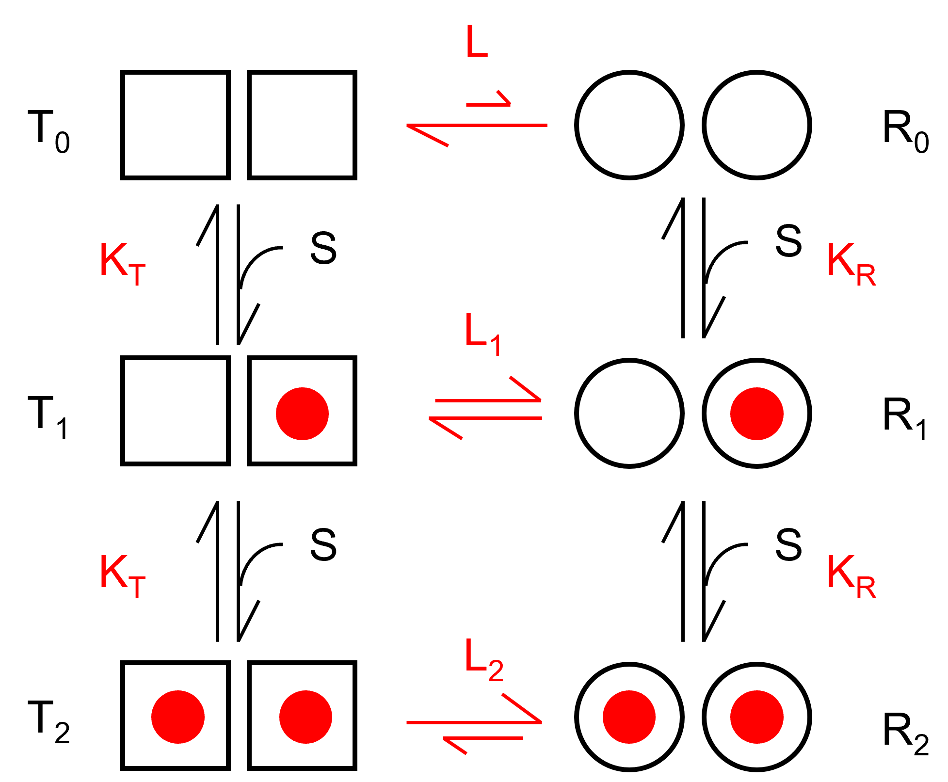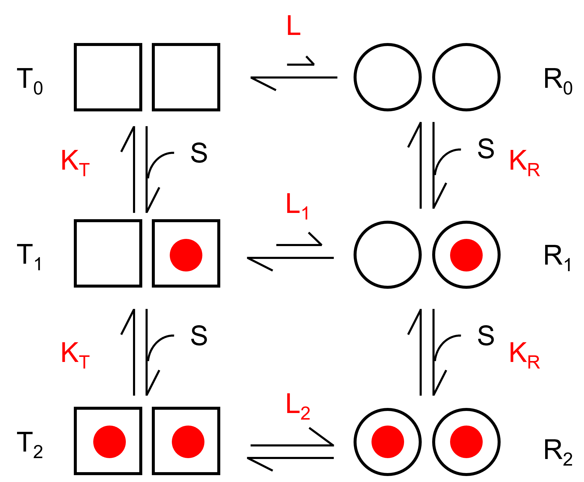 まずはT状態とR状態を遷移する6状態モデルを考えます.