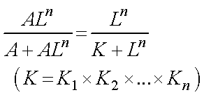 となります. ここで,Kの次元は[Mn]となってしまうので,半分飽和した濃度として,