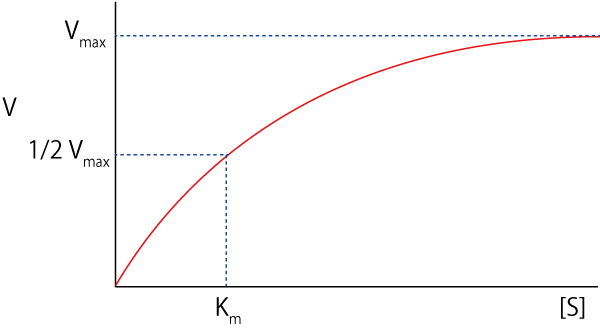 となるので,生成速度が最大速度の半分になる基質濃度がKmとなります.
