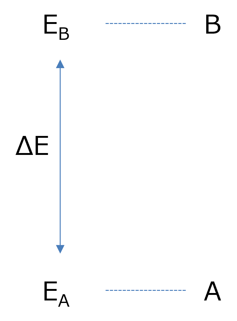 \hspace{40 pt} (\Delta E \equiv E_B-E_A) \)