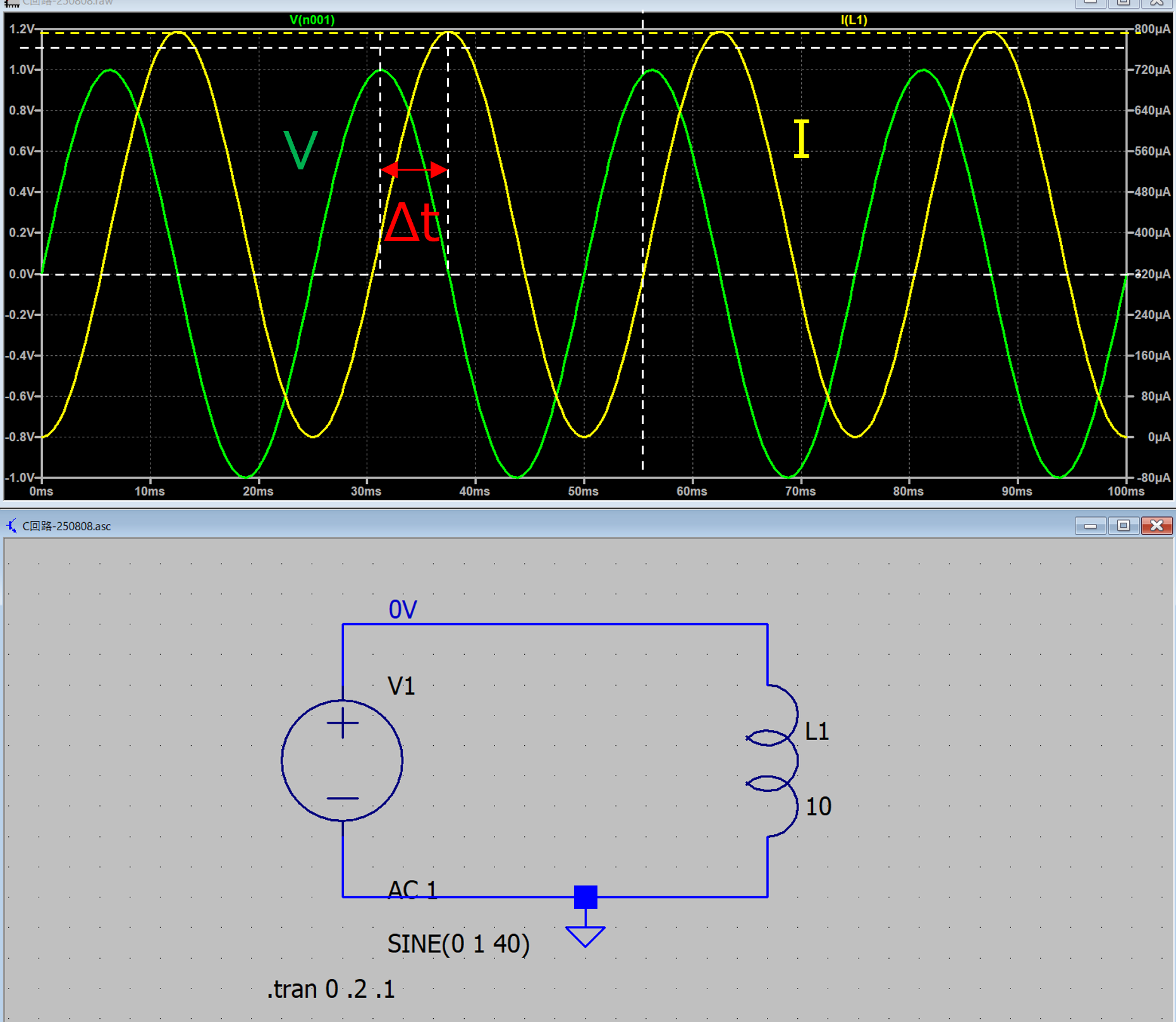 実際にL交流回路を作ってみてシミュレートしてみました.