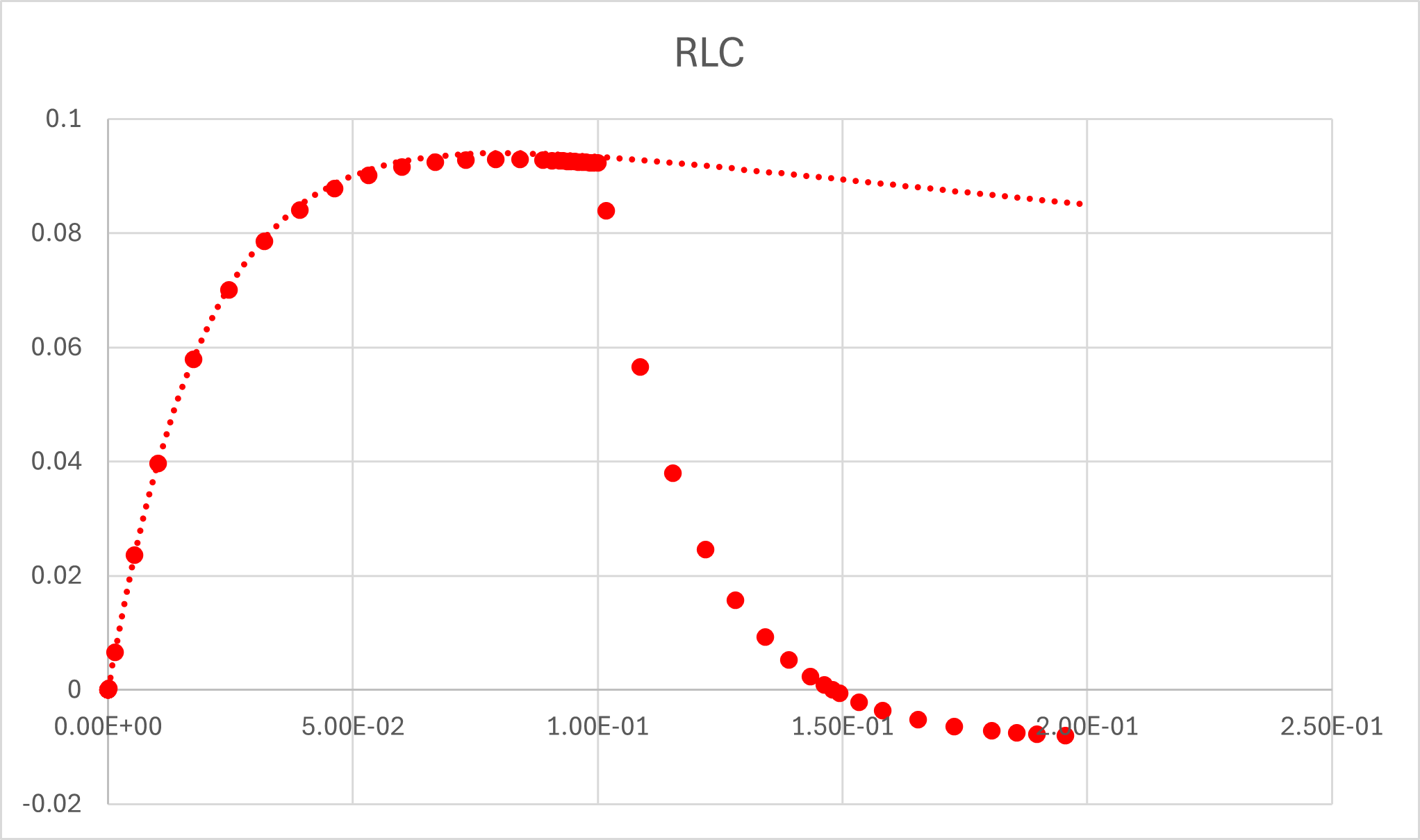 \(\Large \displaystyle I(t) = \frac{ 1}{2}\frac{V_0}{ \omega L} e^{- \alpha t} \cdot \ sinh \ ( \omega t) \)