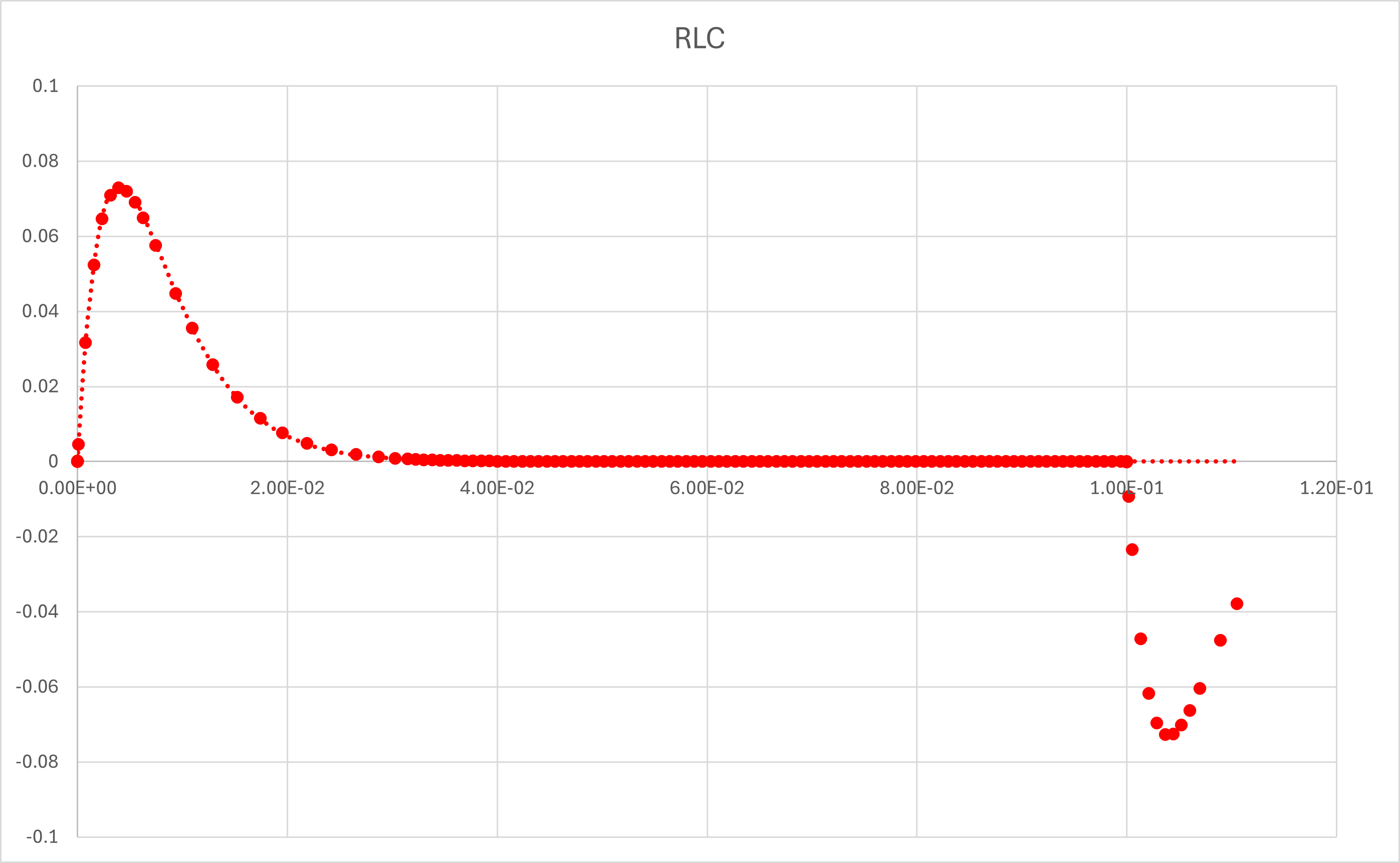 \(\Large \displaystyle I(t) = \frac{V_0}{ L} \ t \ e^{ - \alpha t} \)