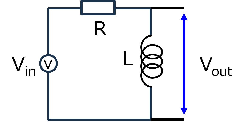 \(\Large G( j \omega) = \displaystyle \frac{V_{out}}{V_{in}} = \frac{Z_{out} \cdot I}{Z \cdot I} = \frac {Z_{out}}{Z} = \frac{ j \omega L}{R + j \omega L} \)