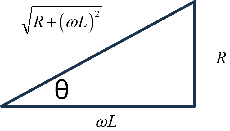 \(\Large \theta = \displaystyle tan^{-1} \left( \frac {R}{\omega L } \right) \)
