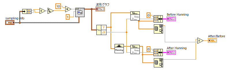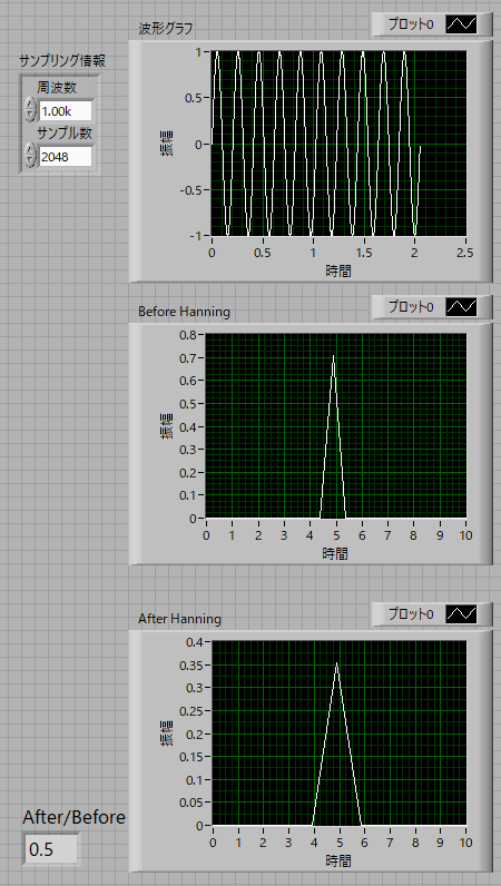 このように,ちょうど,0.5倍,となります.実際のプログラムがこちらです.