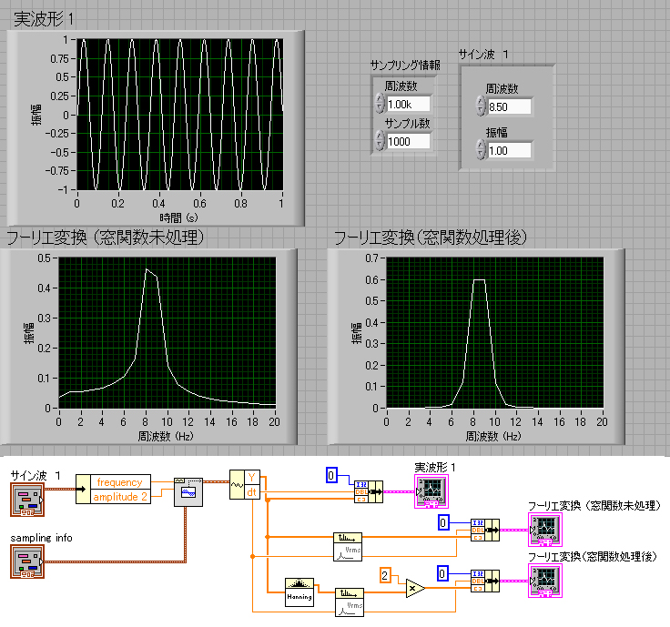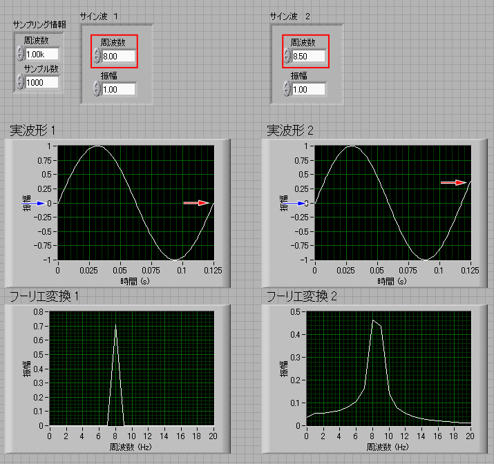 それ以外の,サンプリング周波数,サンプル数,振幅,は全く一緒です.