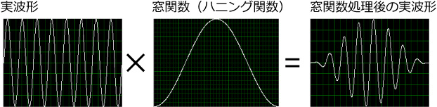 ちなみに,窓関数はいろいろありますが,代表的な窓関数,ハニング関数,を示しました.