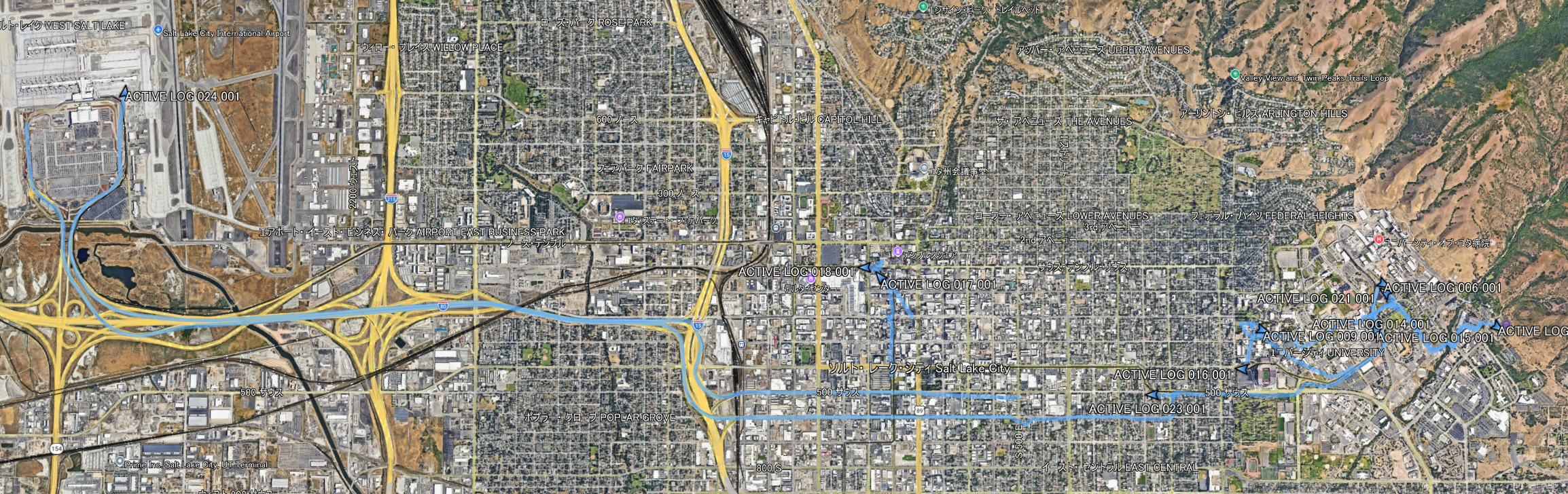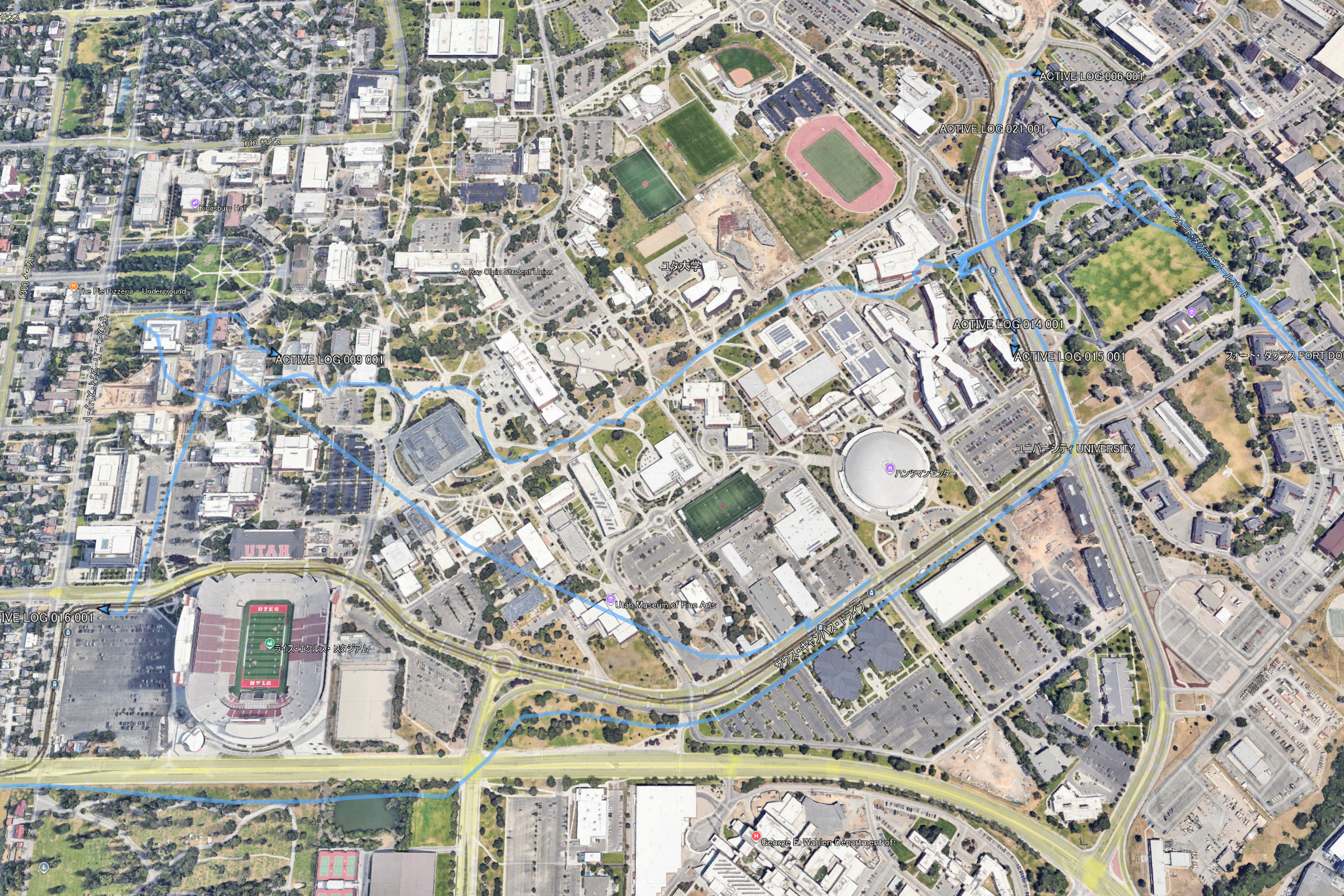 空港からキャンパス,キャンパス内の宿泊施設のトラッキングがうまくいっていることがわかります.