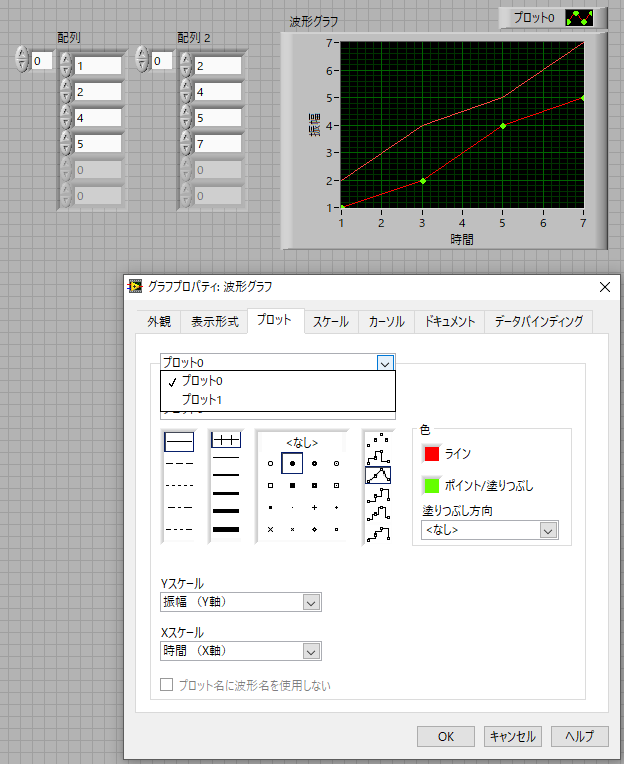 実行してみると上図のように,二つのデータがプロットされていることがわかります.