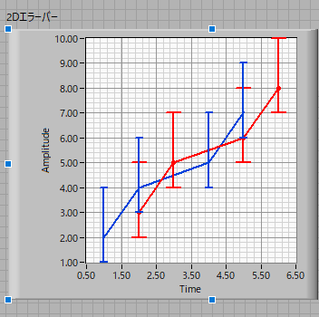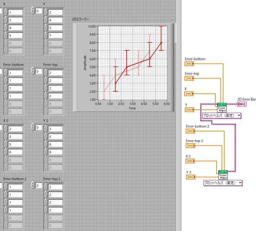 元のエラーバープロットアイコンの左側に紫のくさり状の配線用の端子があります. ここに,新しいエラーバープロット右側の端子を接続します.実行すると,
