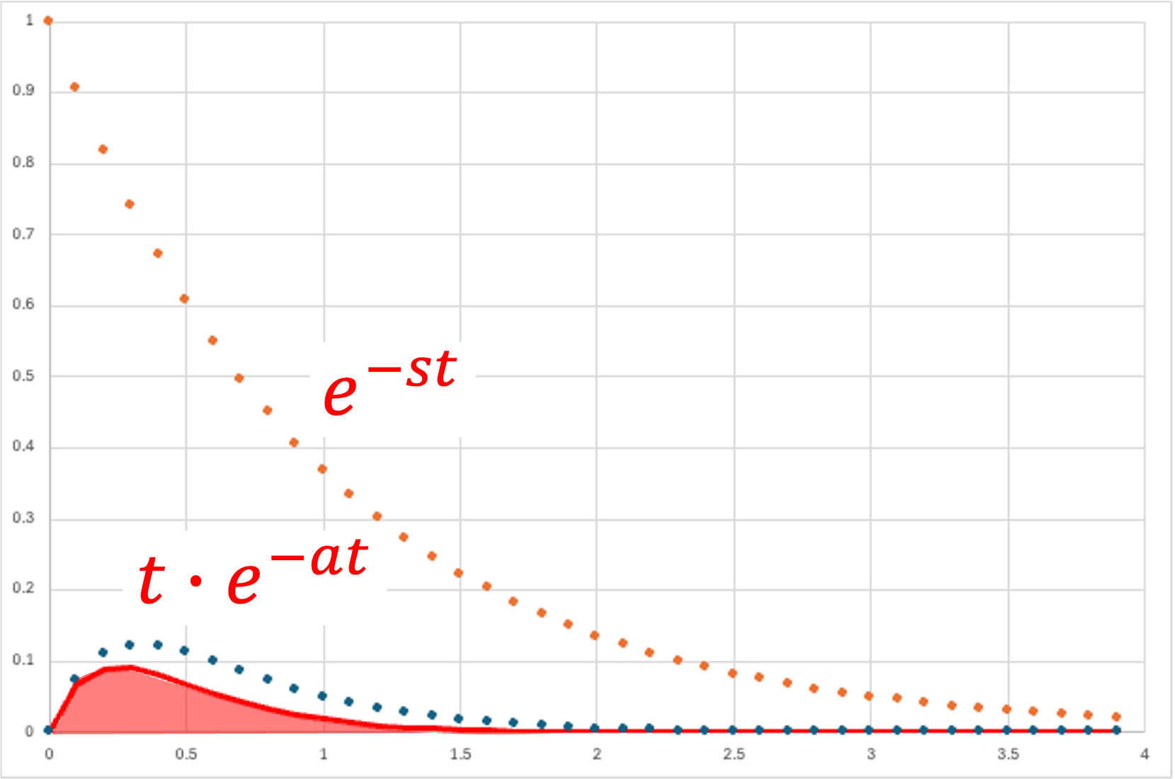 \( \Large f(t) = t \ e^{-at} \)