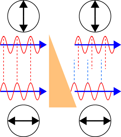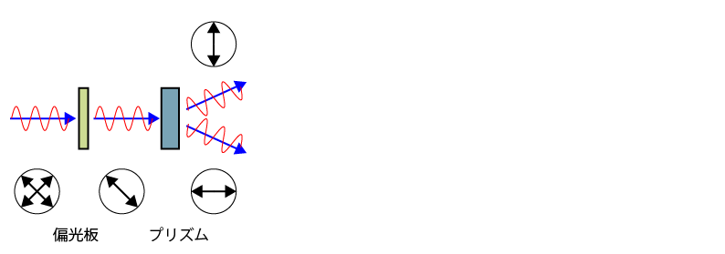 その位置に,新たなプリズムを置くと分かれた光が合成されます.