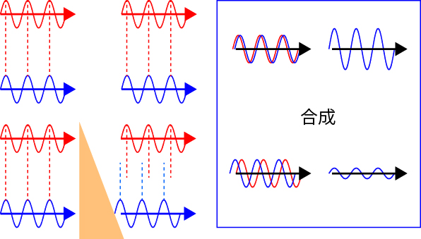 試料の厚みが同じ場合には位相差が起こらない