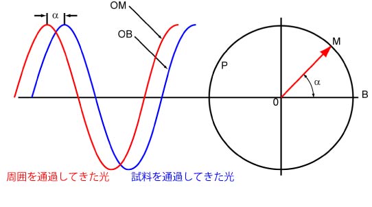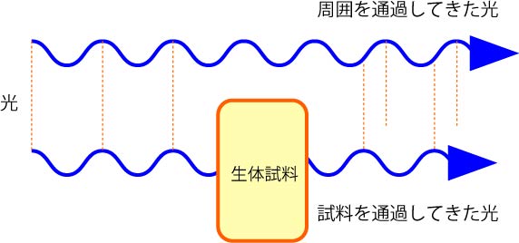生体試料通過後の光は周囲の光より若干位相が遅れる