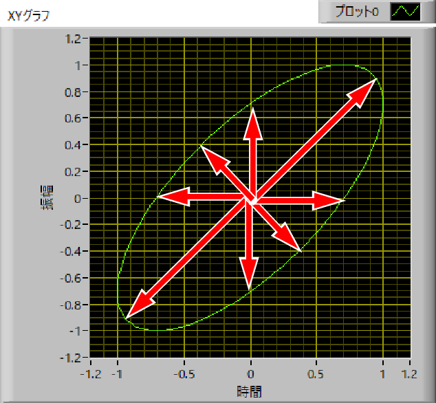 X,Y,それぞれの波形の位相をδx,δy,とすれば,