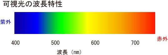 と書いたように,我々の感じる色はこのような波長帯にあるのです.