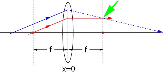 つまり,平行光をレンズに照射すると焦点で集光する,と言うことです.