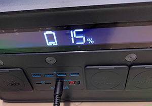 購入時には1%しか充電されておらず,部屋内に太陽光パネルを設置しても充電されないことから,一旦コンセントから充電し,15%としました.
