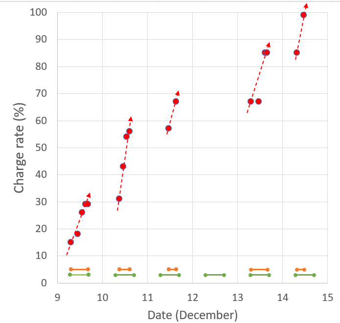 この日は土曜で午後イチの会議だったので,その前後を加えたのみの充電でした.2/3まで充電できました.