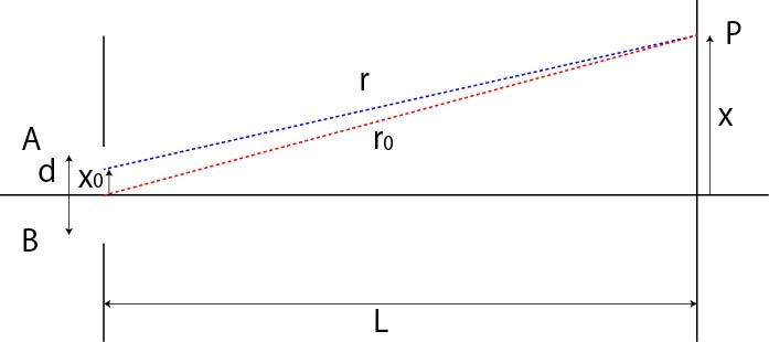 距離xの位置のP点での光強度をスリット全域で積分すればよいので,