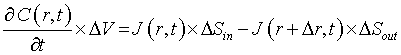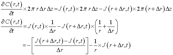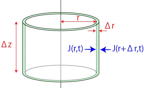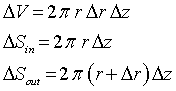 円筒自体の体積ΔV,面積ΔSin,ΔSoutはそれぞれ,