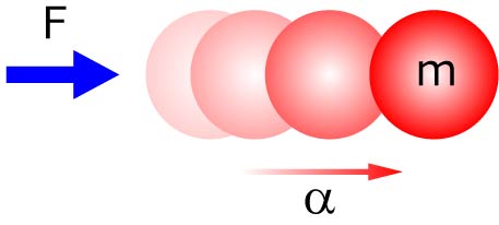ここにある力,F,を加えると一定の加速度,α,を生じます.