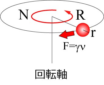 先ほどは,Rだけ離れたところにおもりをつけましたが,今回は,おもりではなく,球体をつけて周囲の粘性抵抗を受けるようにしましょう.