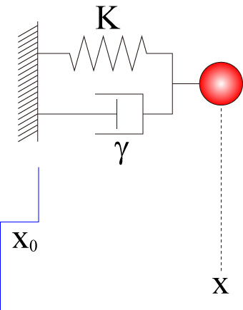 粘性が低ければ,そのまま変位に追従して動く(X0=X)