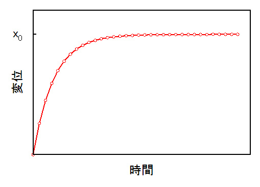 となり,ある時間遅れを伴って,じょじょに与えた変位,x0,に近づいていくことがわかります. その時定数が,K/γ,となるわけですね.