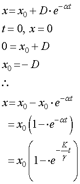 となります.D,は今度は定数です. 従って,変位,x,は,