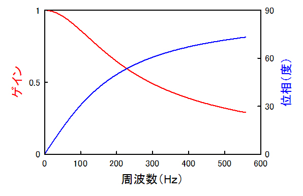 で,振動する周波数を変化させた場合の振幅の変化(ゲイン),位相の変化を見てみましょう.