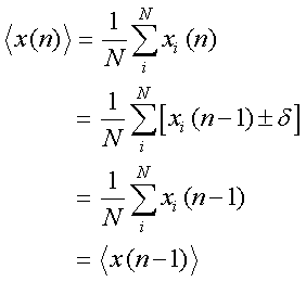 つまり,nステップ後もn-1ステップ後も平均の位置は変わらない.
