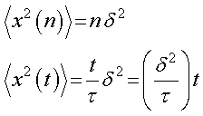 適当に決めたステップの間隔,δ,とステップの時間,τ,がなんであの有名な拡散定数になるの?と言う疑問は後ほどに.