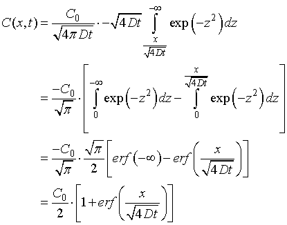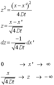 ある,x,の地点での濃度変化を知りたいので,まずは積分範囲を粒子がある範囲,0<x'<∞,で計算しましょう.
