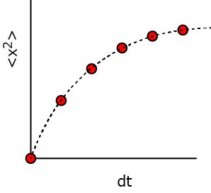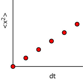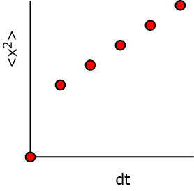 実験結果をMSDプロットで解析した場合(特に時系列の解析の場合),得られたプロットを直線近似してその方向きから拡散係数を求めます.