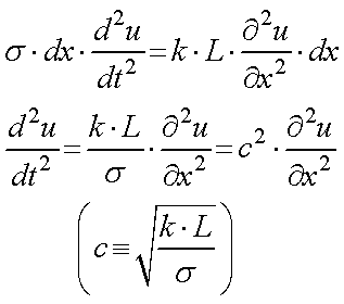 バネに伝わる縦波の変位,u(x,t),を考えましょう.