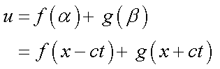 となり,f(x-ct)は正の向きに,g(x+ct)は負の向きに,速度cで動く波となります.