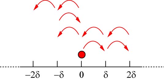 1.各粒子は速度vでτ秒ごとにδ=vτだけ,右か左に移動する