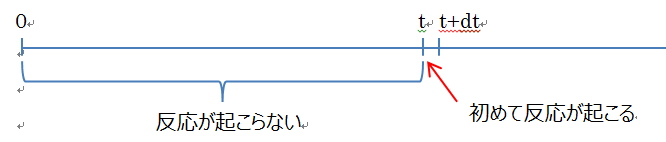 2.tという時間,もしくはt+dt,の間に初めて反応が起こる