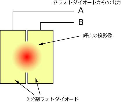 彼らは分割フォトダイオードの代わりに,プリズムを用い,輝点からの光を2分していました.