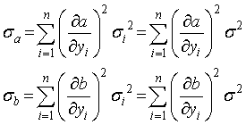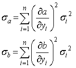 このa,b,の式を誤差伝搬法則における関数,f,と考えれば,それぞれの誤差は,