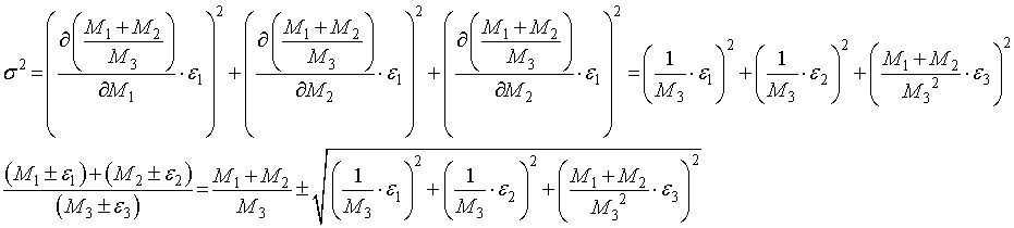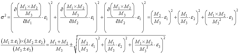 ・ {(M1±ε1)+(M2±ε2)}/(M3±ε3)