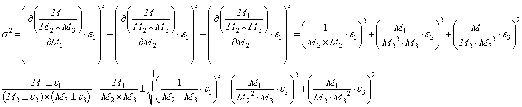 ・ {(M1±ε1)×(M2±ε2)}/(M3±ε3)