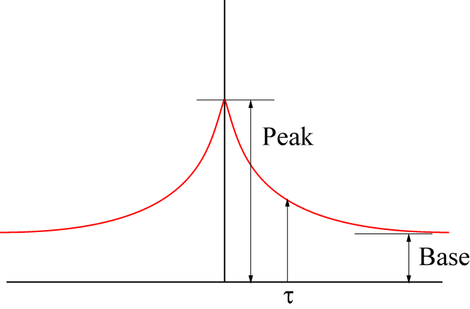 \(\Large A[t] = A_0 \cdot exp \left( - \frac{t}{ \tau} \right) \)
