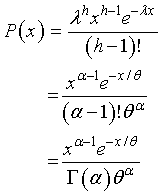 となり,無事にガンマ分布を導き出すことができました. 最後の,階乗からガンマ関数への変換は,ここ,をご覧ください.