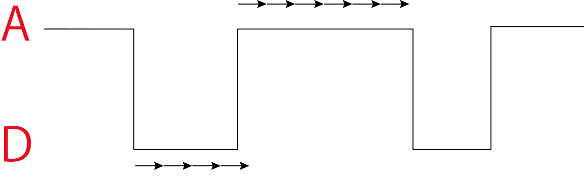 図のように,A状態(値a)とD状態(値d)をランダムに遷移する過程を考えていきましょう.