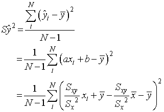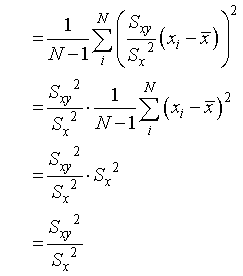 つまり,ばらつきから求めた決定係数と共分散から求めた決定係数は一致する,と言うことになります. ただし....直線近似のみ適用できることになります.詳しくは次ページを見てみましょう.