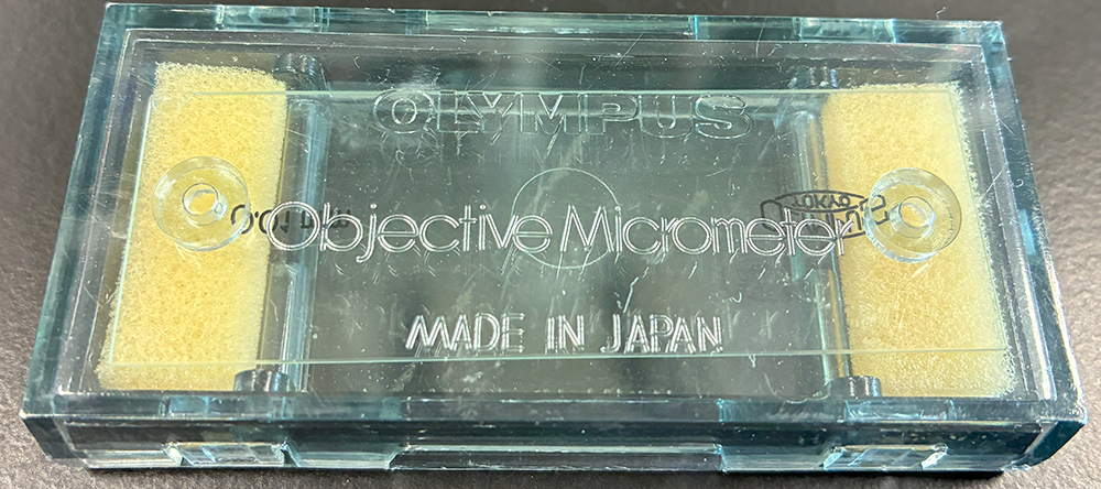 iPadなどの上に,マイクロメーター(オリンパス)を置き,実態顕微鏡上でフォーカスを変更して撮影
